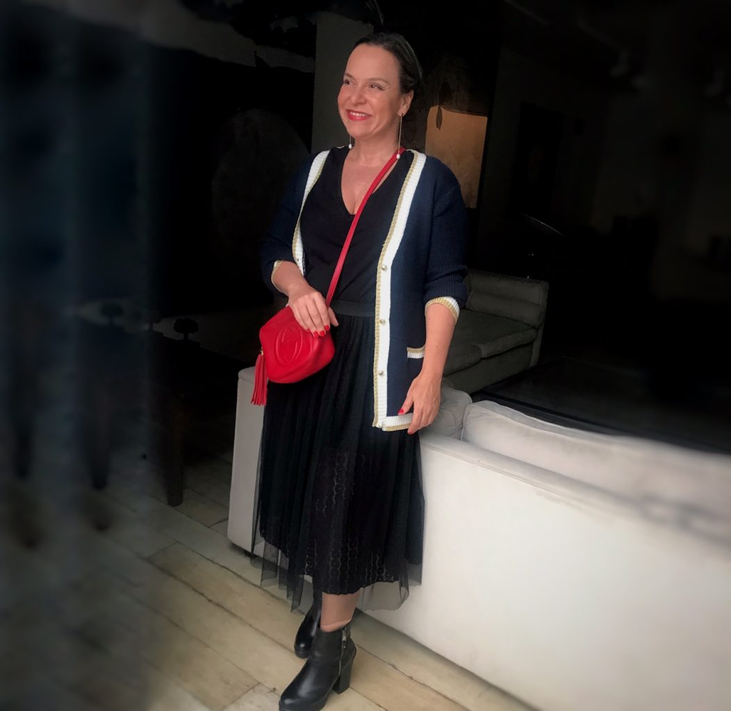 Nessa semana mesmo, usei uma outra versão ( também da Rafa ), com shape mais alongado e bordado mais bacaninha. Usei com saia de tule e ankle boots, em um look moderninho, mas bastante feminino.