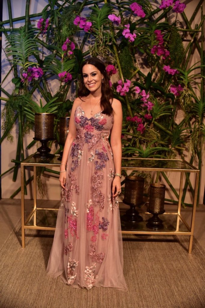 Ela escolheu uma clutch roxa bem forte BOTTEGA VENETA e joias em tons de rosa bem suave, assim como a make by Milena @MAKEE.MI .