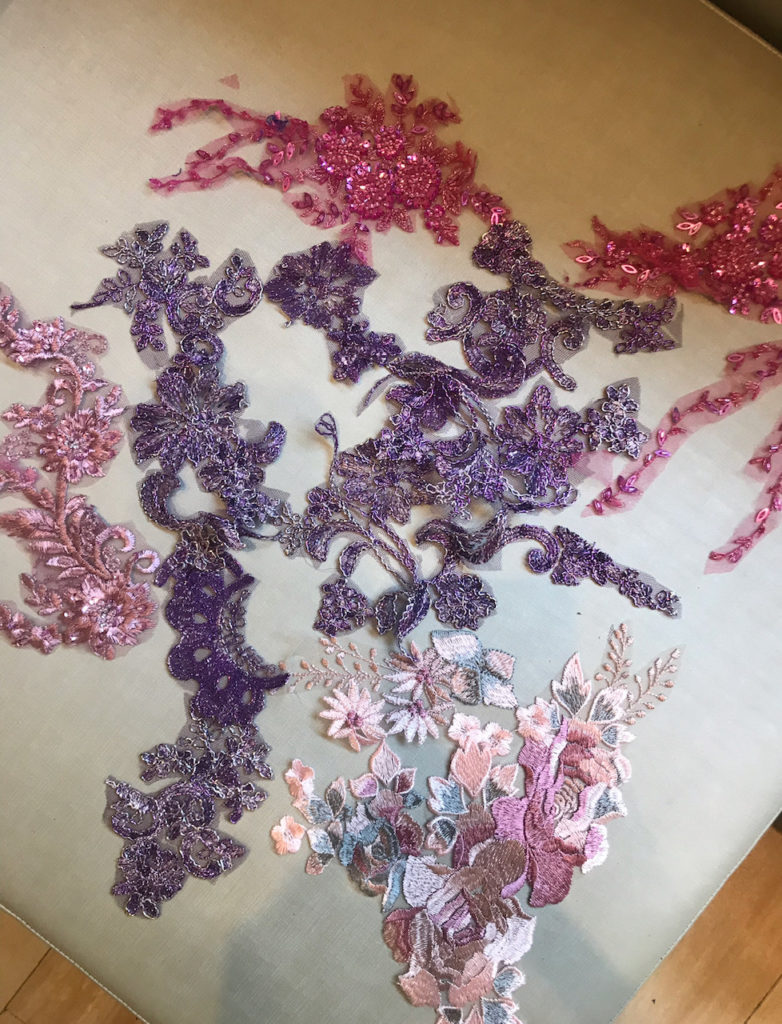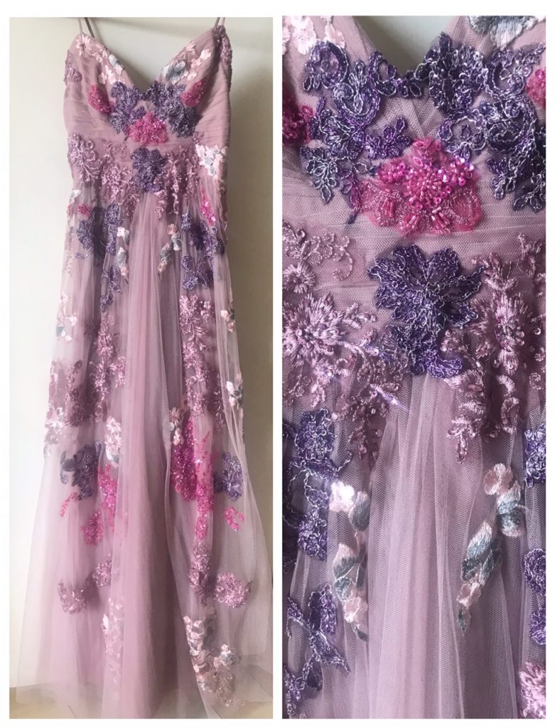 Assim, eu me propus a procurar para ela rendas francesas bordadas em vários tons de rosa, e seguindo a inspiração do vestido PATRICIA BONALDI abaixo, fomos montando no corpo dela, em várias provas, com nossa costureira Isabel.