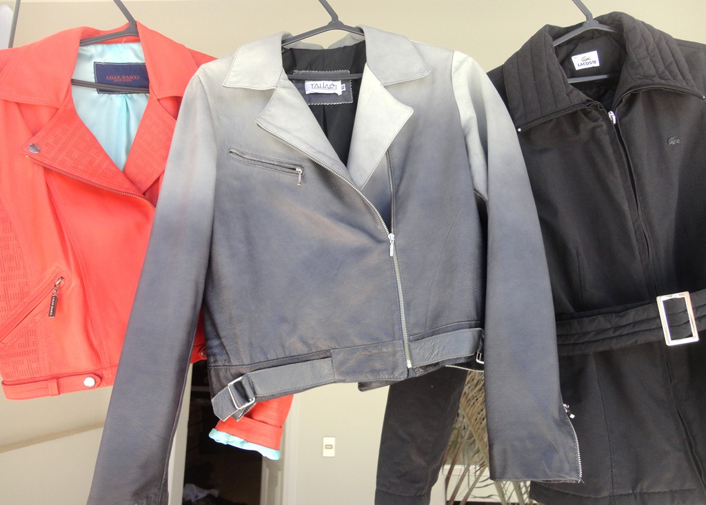 1 casaco impermeável ( e para ventos!!! ) e 2 jaquetas de couro para variar !
