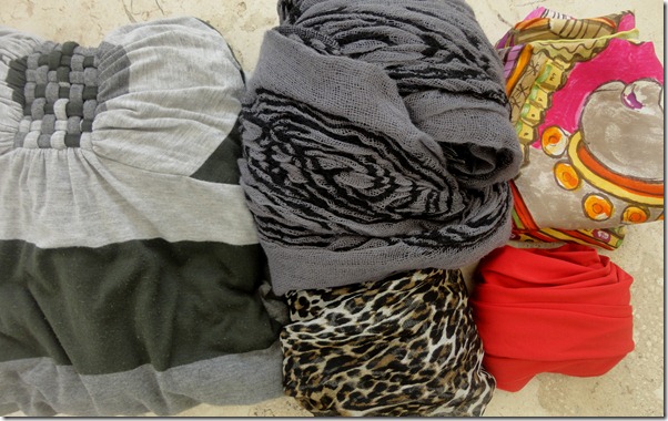 1 vestidão de malha ( se fizer um calorão!!! ) e 4 lenços
