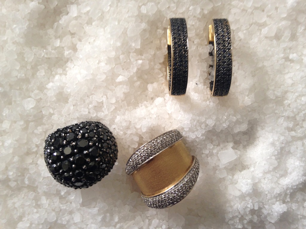 argola de safiras , anel em ouro e brilhantes e anel em brilhantes negros – clássicos !