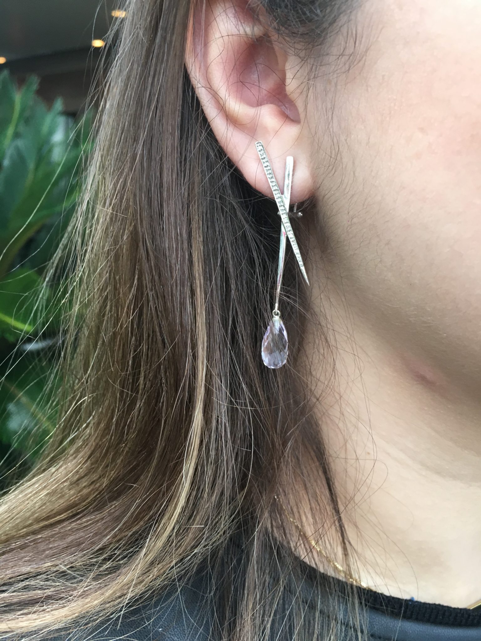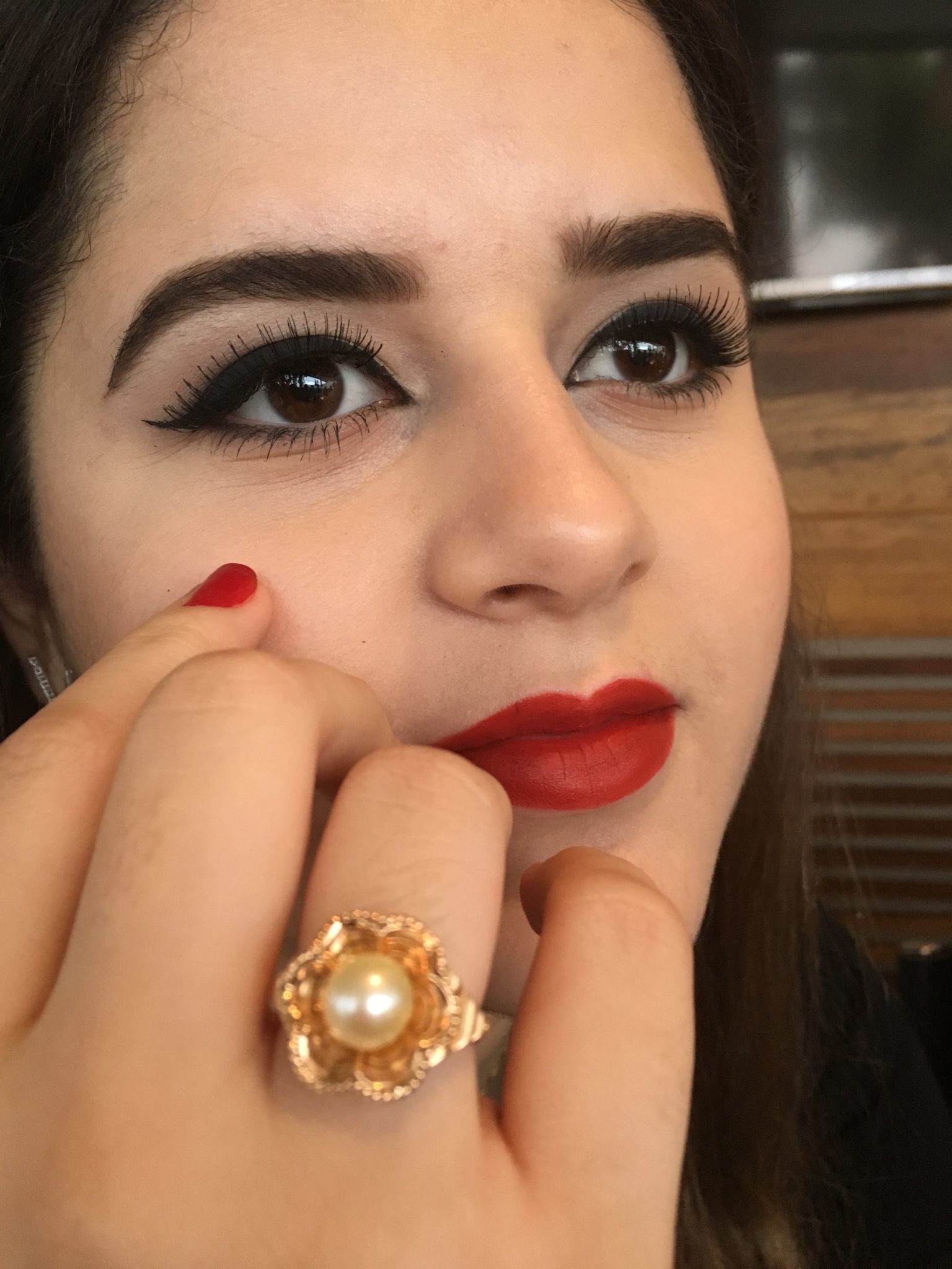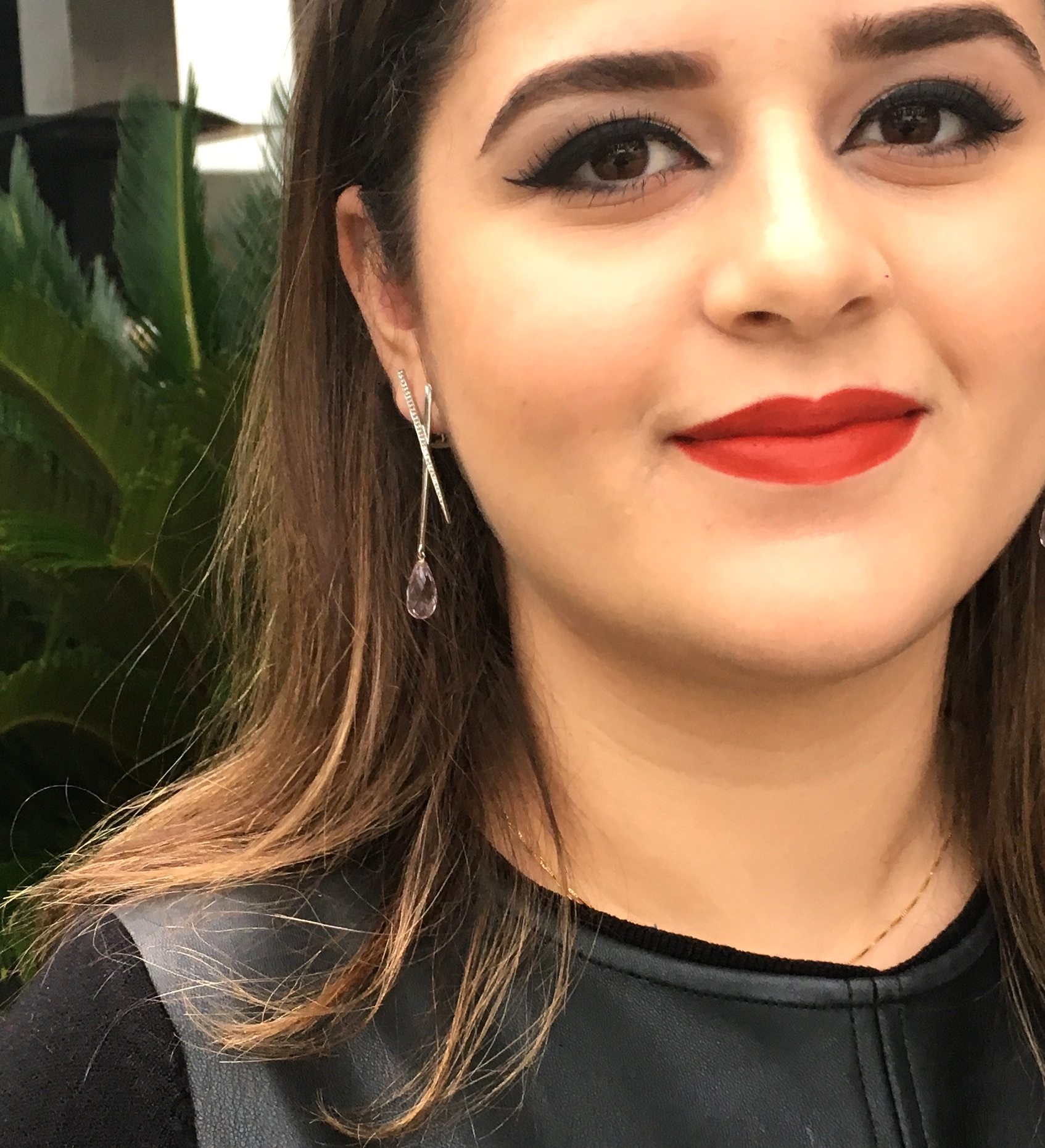 Giovanna misturou lindamente um brinco em linhas retas em ouro branco com anel em ouro amarelo e pérolas. E ficou um luxo! As jóias cresceram nesse look meio “rocker” de vestido de couro com ankle boots. Take a look!