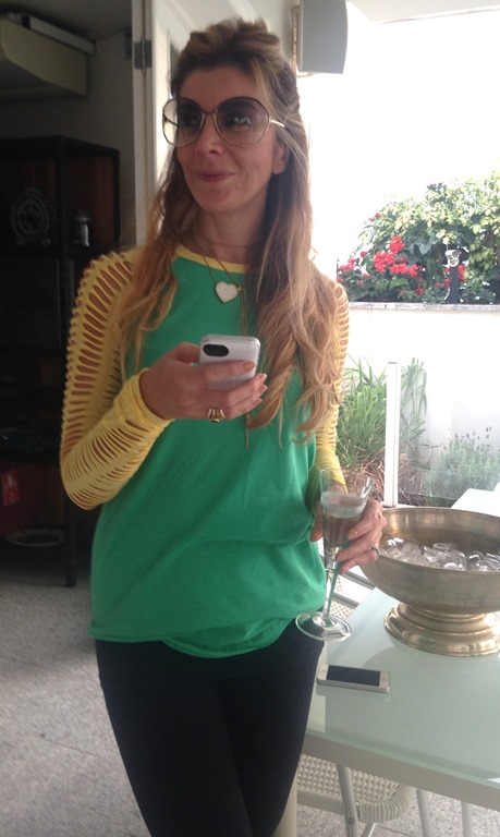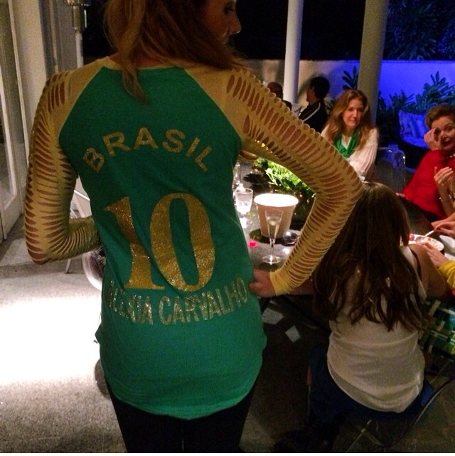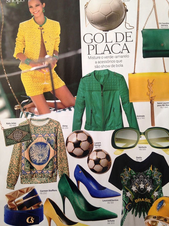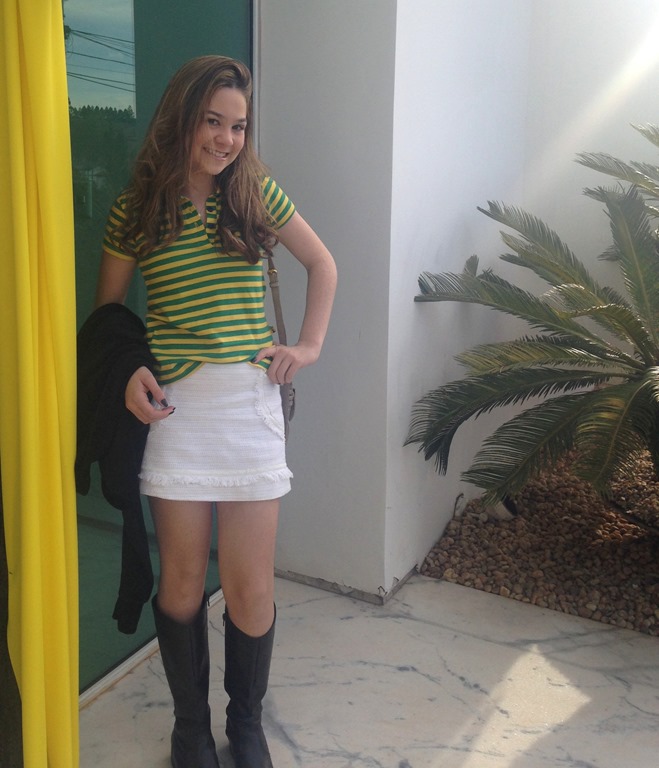 Esse look da blogueira da Aléxia Carvalho resume tudo o que a VOGUE BRASIL diz que tá super in para torcer com muito estilo nessa copa: Camisa com número atrás, acessórios em verde e amarelo e um olho grego para dar sorte! Inspire-se para amanhã!