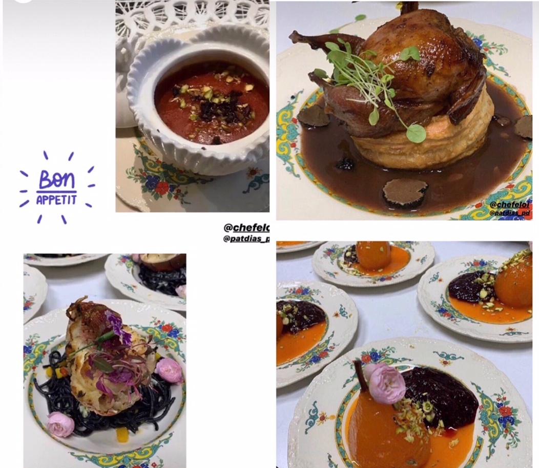 *Codorna recheada com palmito folhada e creme de baroa com trufas raladas ao molho de zimbro.